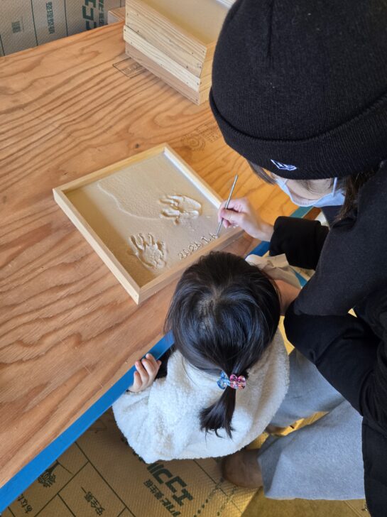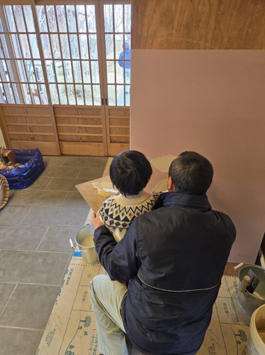 本物の素材とコテを使い、職人の手ほどきを受けながら進める体験。お子様はもちろん、大人の方も夢中になれる時間です。