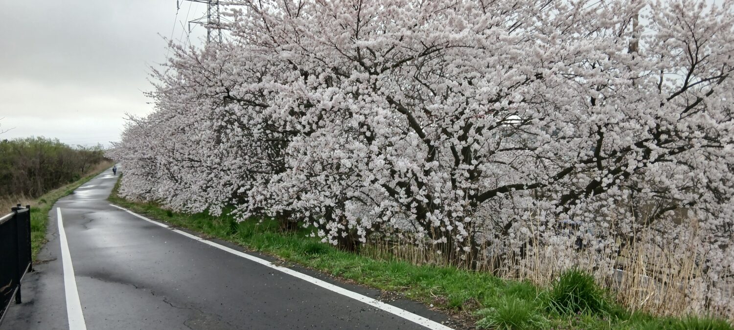 朝のジョギング中、視界の先には土手を淡く染めるピンク色。
