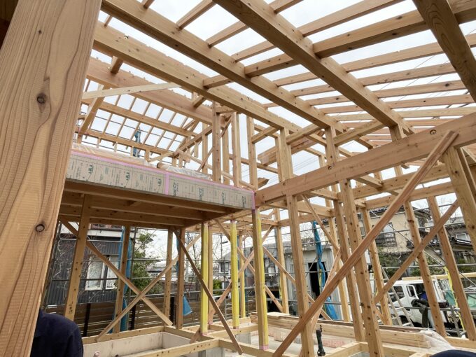 暖かな快晴に恵まれ、J様邸が無事に上棟を迎えました。