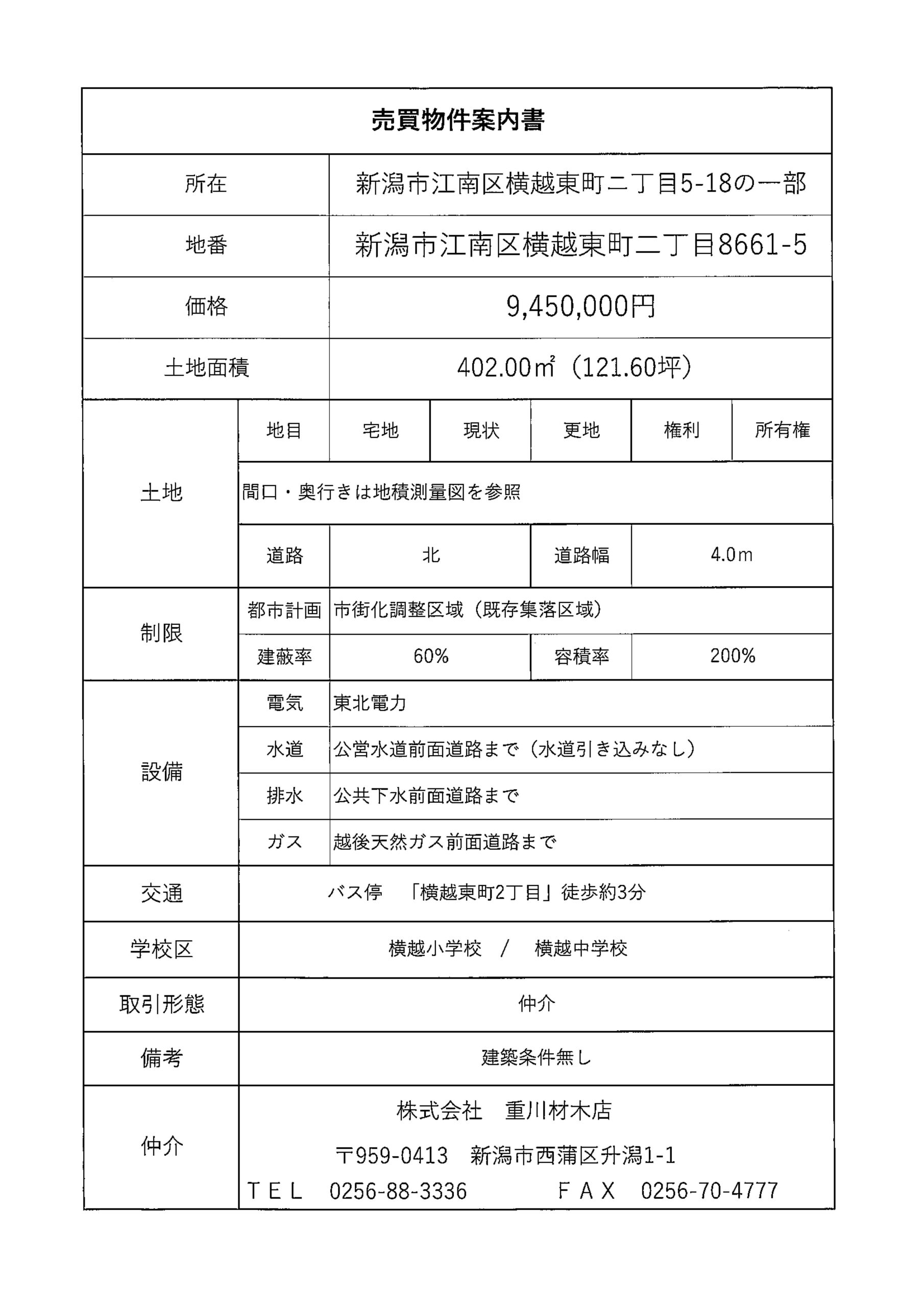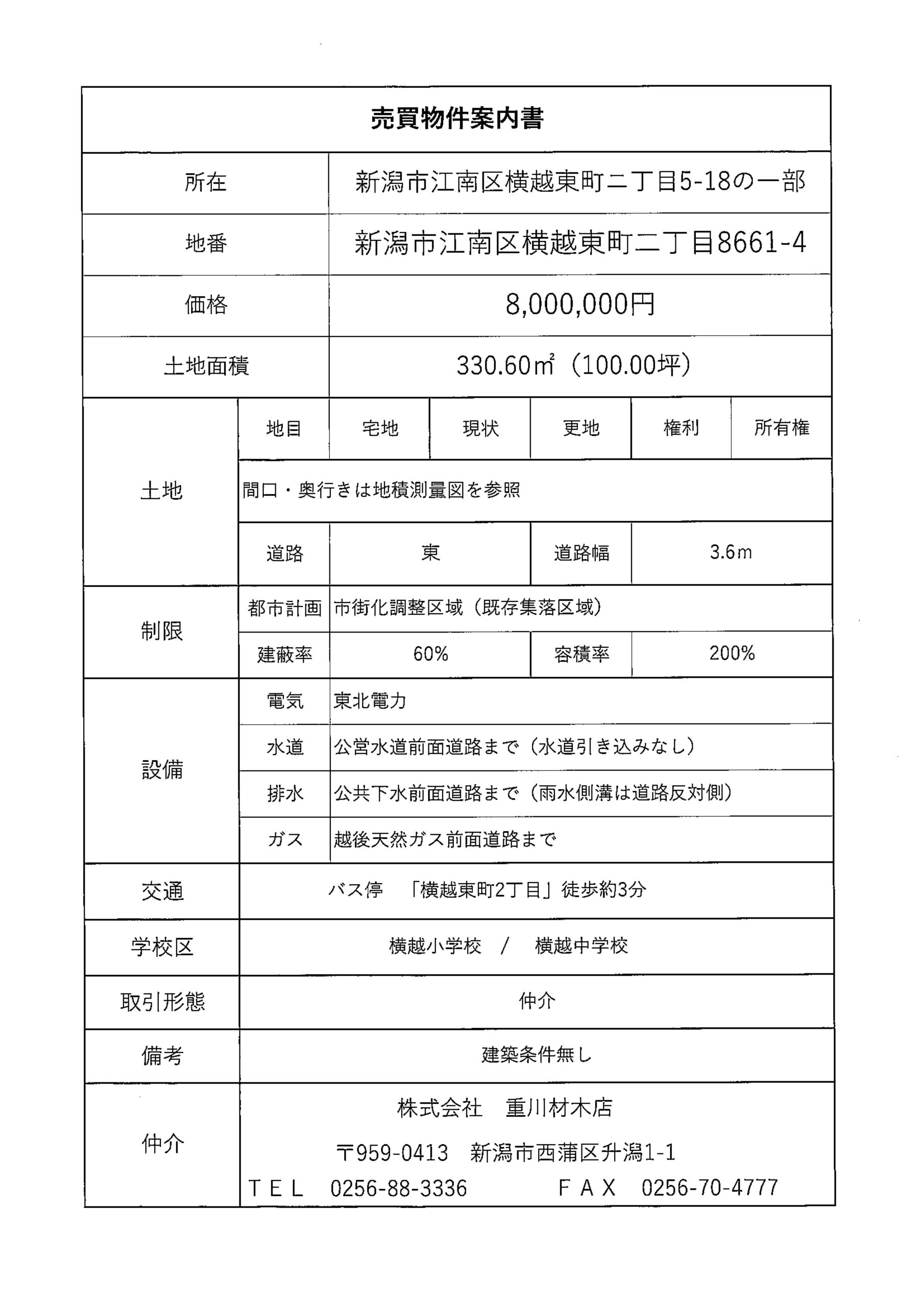 【住宅用売地】新潟市江南区横越東町2丁目5-18