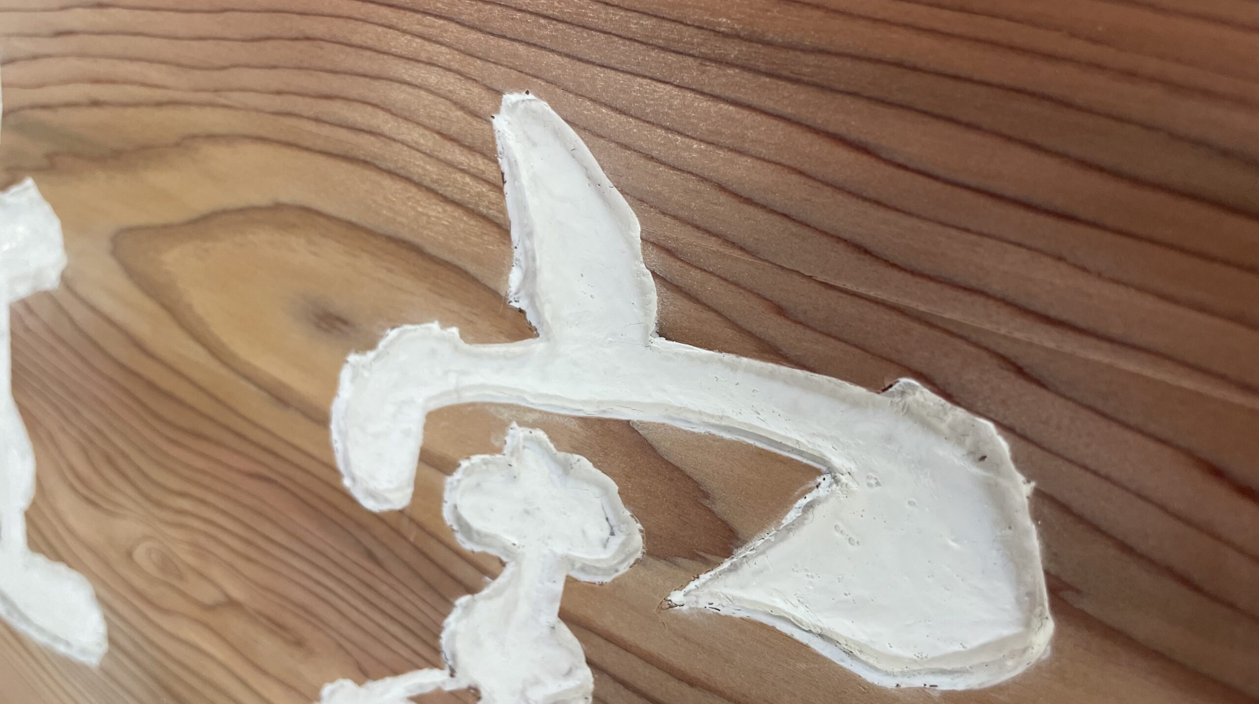 文字の色付けには、単なる塗料ではなく、日本画で古くから使われる「胡粉(ごふん)」を使用しました。