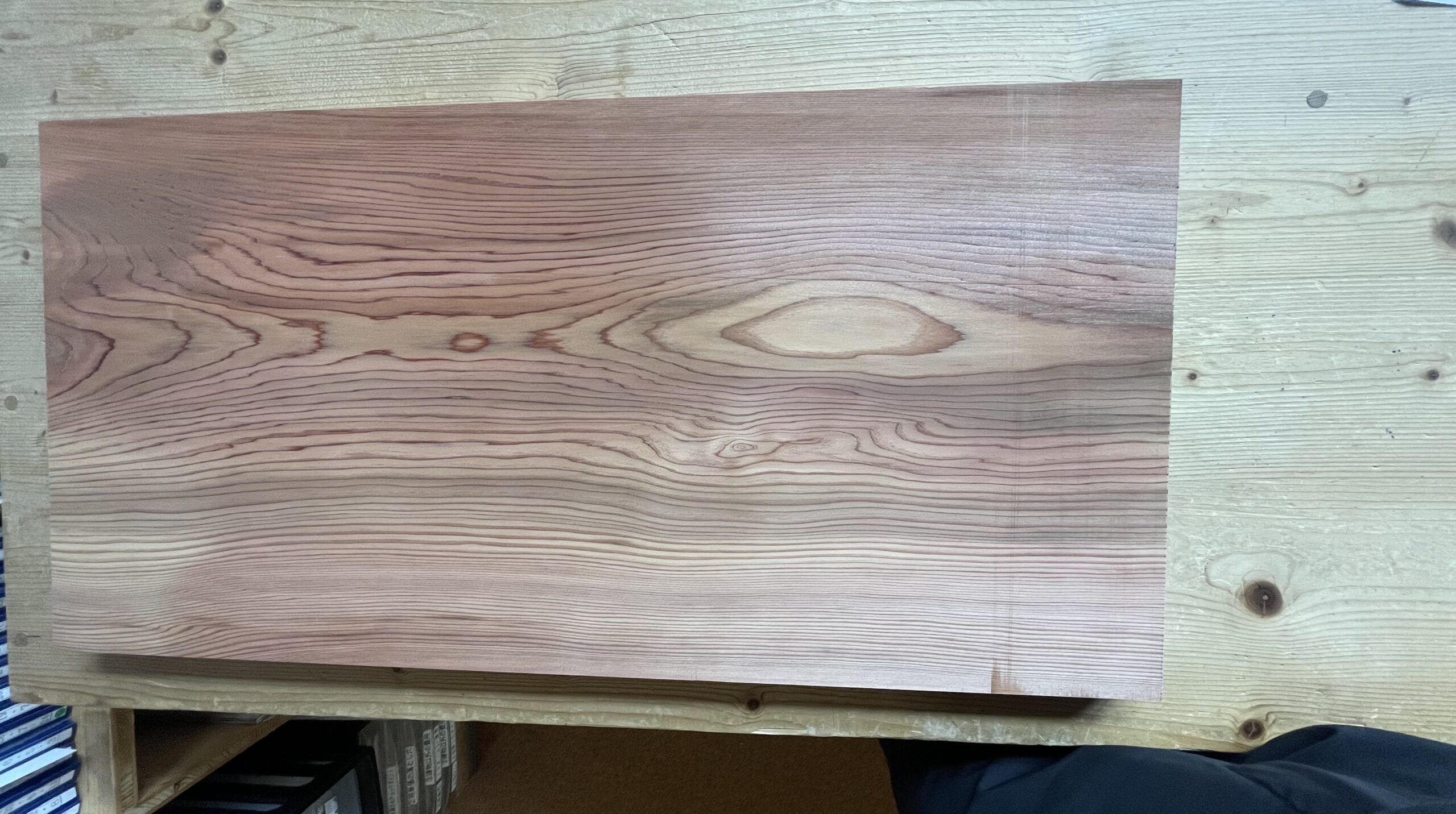 まず、オーナー様からの大きさや字体のご要望に基づき、扁額の土台となる木材を選定しました。