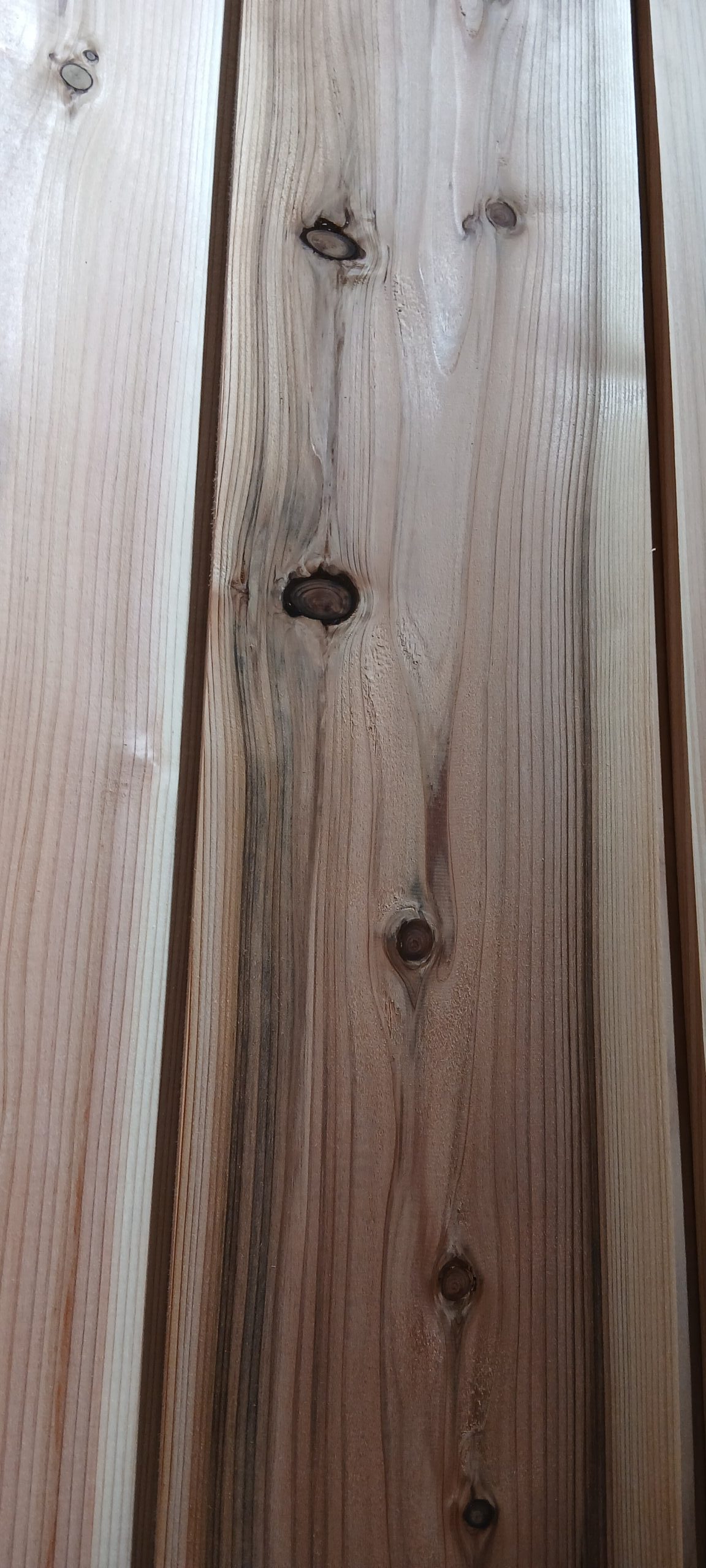 節が抜け落ちて穴になっているものがないかを確認します。特に外壁に使用する場合、ここから虫が侵入する原因となるため、注意を払います。