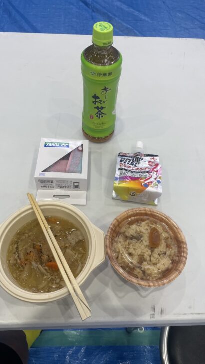 そして、何よりのお楽しみはご褒美の食事!サザエの炊き込みご飯と、具だくさんの豚汁は、なんとおかわり自由という太っ腹さ!走ったあとの空腹を満たす、最高の味でした。