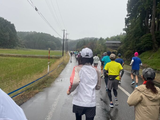 当日はあいにくの雨模様でしたが、気温が低すぎず、晴天で暑い日よりもかえって走りやすいコンディションでした。今年は隣の柏崎市でも同日開催のマラソン大会があった影響か、参加者は昨年よりやや少なめの300名程度だったそうです。