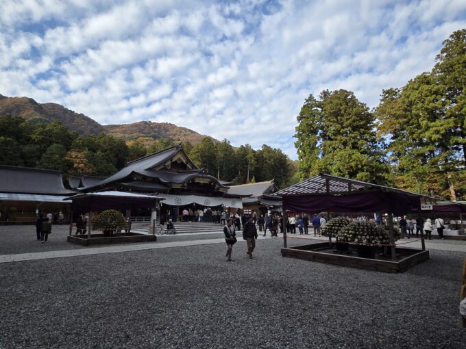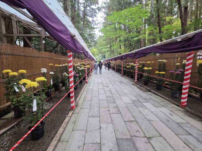 ちょうど弥彦神社の近くで工事が始まったこともあり、安全祈願を兼ねて早朝にお参りしたのが、菊祭りの開幕前日となる2025年10月31日のこと。早朝だったため参拝客もまばらで、静かに境内を巡り、丁寧に育てられた美しい菊たちをじっくりと見ることができました。