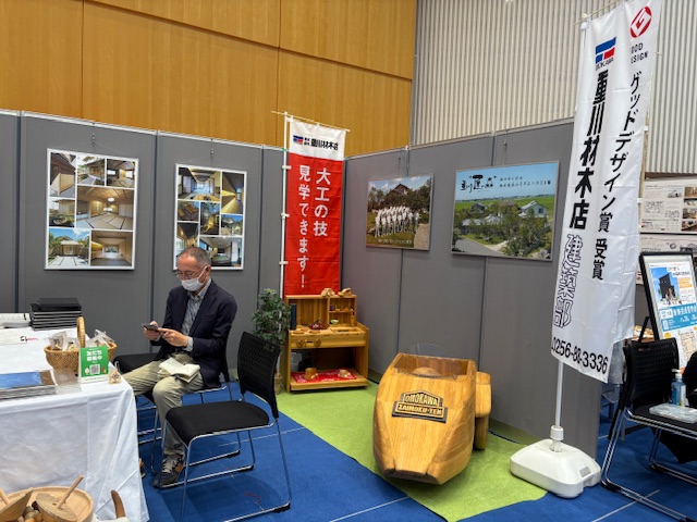 今回のブースでは、重川らしい「木」を感じる展示で皆様をお迎えしました。