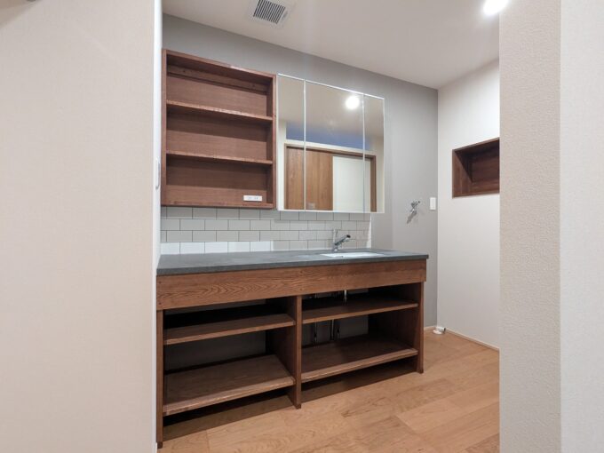 既製品の洗面台も使いやすく便利ですが、造作洗面台の魅力は「空間にフィットする」。
