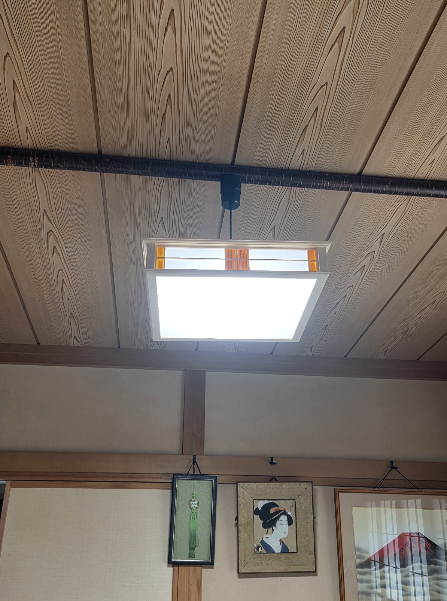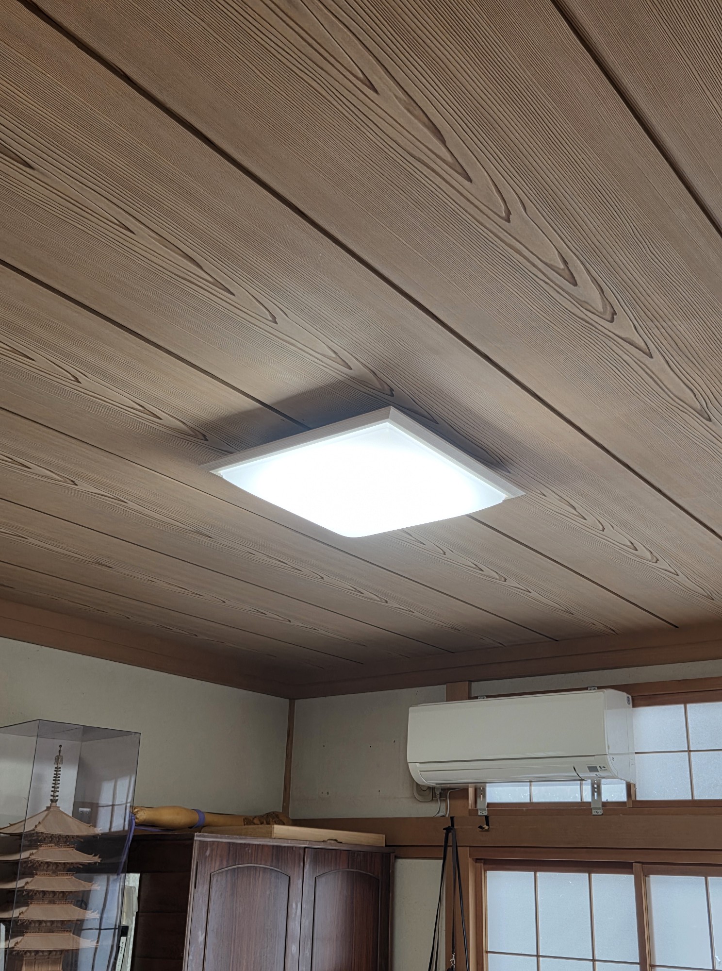 和室の趣を壊さないように変更。お部屋の見た目もスッキリとしました。LEDなら調光・調色機能が充実しているため、くつろぎの時間は暖色に、読書をするときは白い光にと、シーンに合わせて使い分けが可能です。