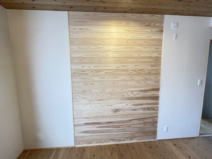 そこで、単に似たクロスを貼るのではなく、新しい壁をあえて「アクセントウォール」としてデザイン。杉の上小節(じょうこぶし)板張りで仕上げました。木の温もりが感じられる、新築時とはまた違った趣のある空間へと生まれ変わりました。
