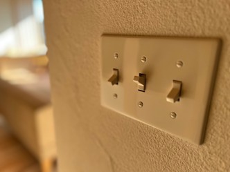 パチンと心地よい音を立てるこだわりの「トグルスイッチ」と、 職人が丁寧に塗り上げた左官壁。