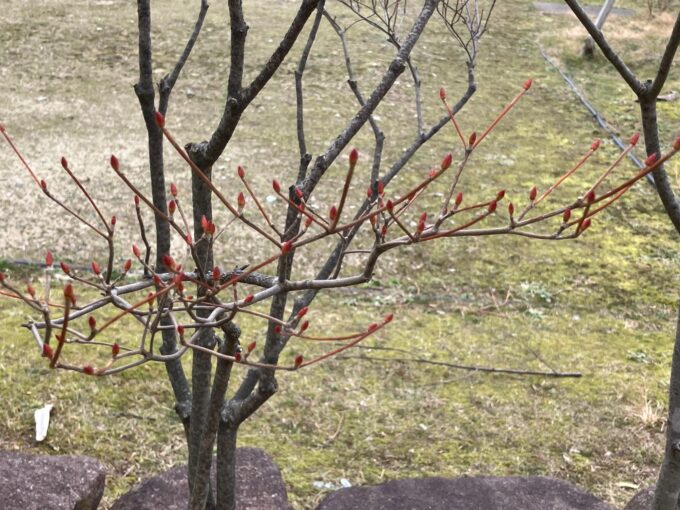 外を歩けば、まだ空気は冷たく身が引き締まる思いがしますが、ふと足元の木々に目を向けると、確かな季節の歩みを感じることができます。