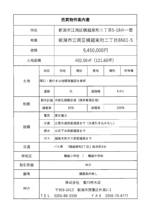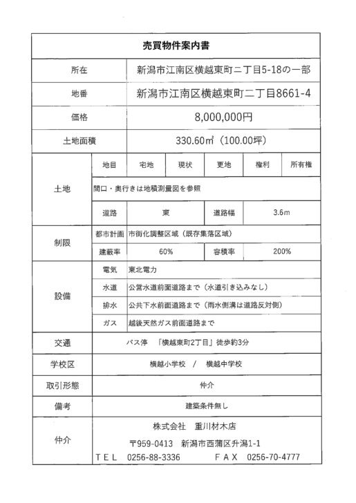 【住宅用売地】新潟市江南区横越東町2丁目5-18