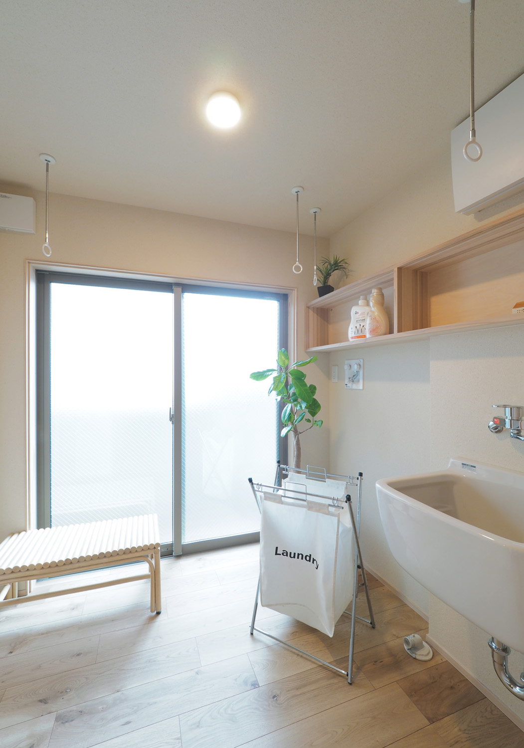 家事を快適にするユーティリティースペース。泥のついた靴や服、ペット用品などでの使用が便利。深さがあるので、水跳ねを気にせず作業できます。