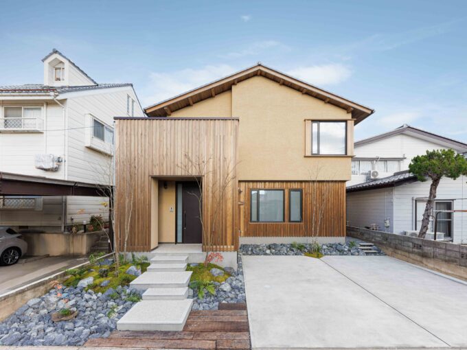 一見平屋建てに見えるデザインは、外観の美しさを保ちながら、二階建ての広さを確保しています。